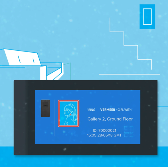 Solution autonome à écran tactile, Fortecho Lite assure une surveillance sans fil continue (24h/24 et 7j/7) des peintures, estampes, vitrines, sculptures et autres objets de valeur, à une échelle réduite.
